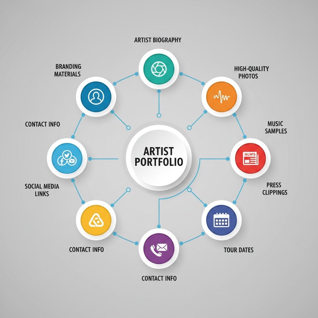 An Electronic Press Kit (EPK), often used interchangeably with a digital artist portfolio, serves as a comprehensive digital package of promotional materials for artists. It's designed to provide industry professionals—such as booking agents, journalists, record labels, art curators, and potential clients—with all the necessary information to understand an artist's work, background, and professional capabilities at a glance. Think of it as a dynamic, always-on resume and showcase that highlights your best work and professional achievements [1].